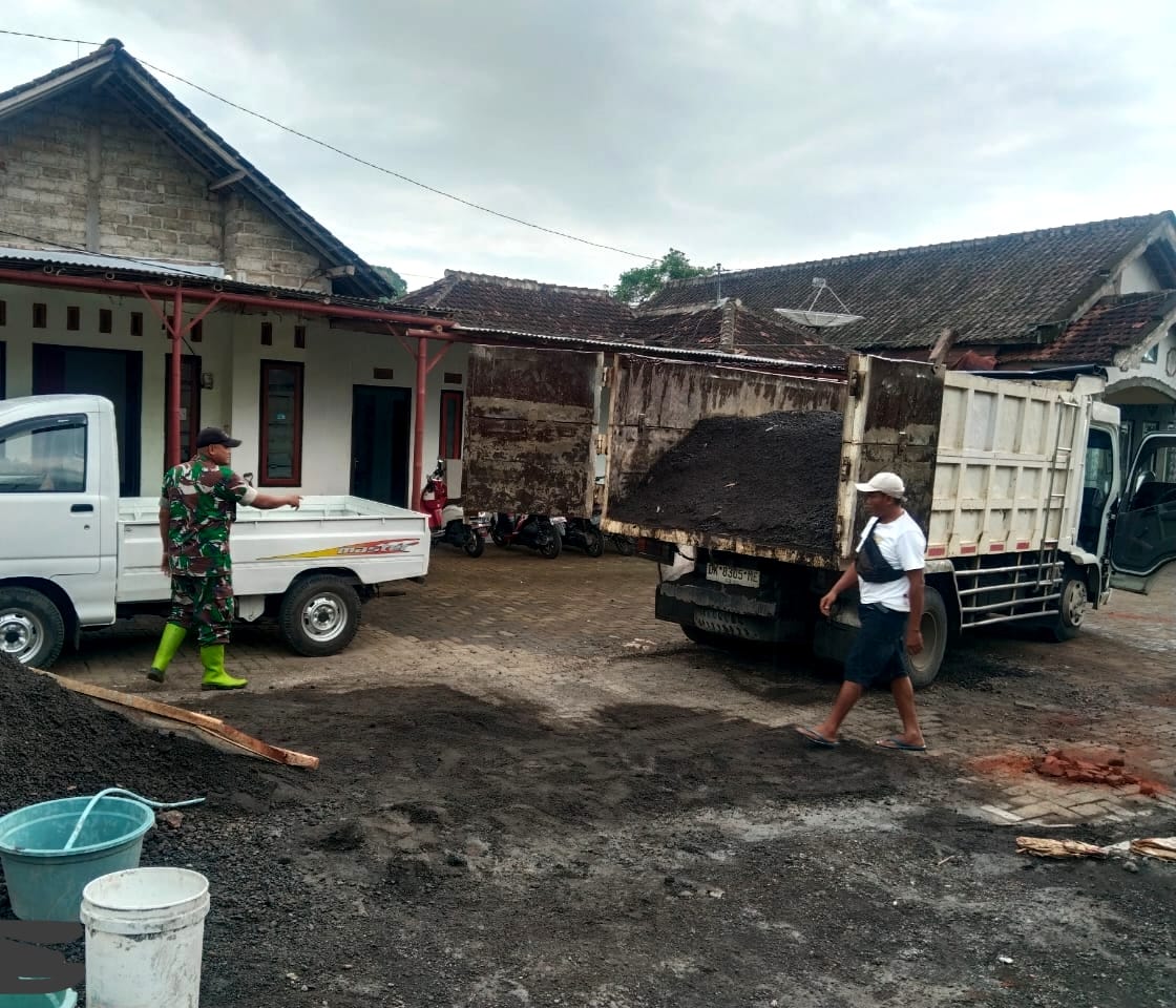 Salah satu proyek utama dalam TMMD ini adalah pembangunan Mushola serta Gapura TMMD, yang membutuhkan pasokan material dalam jumlah besar. Babinsa yang bertanggung jawab di lapangan memastikan bahwa kebutuhan material telah diperhitungkan dengan matang agar proyek berjalan sesuai jadwal. “Semua sudah diperhitungkan dengan masak. Jangan sampai gara-gara droping material terlambat, lantas menghambat pekerjaan,” ujarnya.