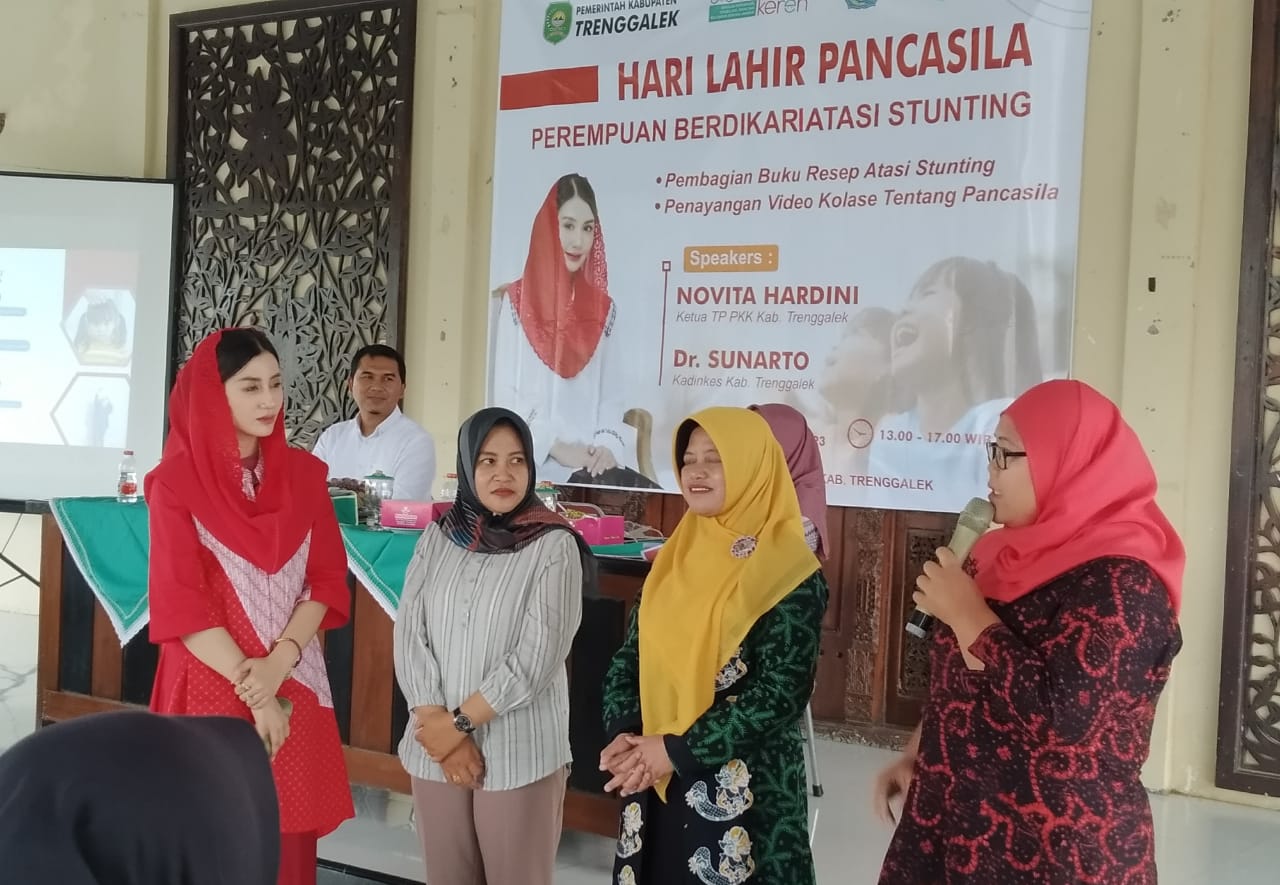 Trenggalek, JATIM.SIBERINDO.CO – Ketua Tim Penggerak PKK Kabupaten Trenggalek, Novita Hardini, mengajak 110 kader perempuan dari berbagai elemen di Kabupaten Trenggalek mau berperan aktif melakukan pendekatan dan penekanan stunting.