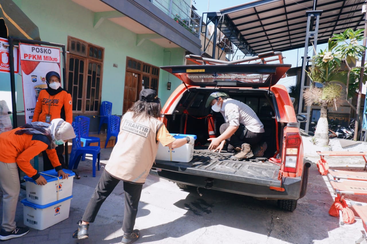 KEDIRI- Warga lingkungan Kelurahan Kemasan dan Setonopande yang melakukan pembatasan berskala mikro mendapat bantuan paket rekreasional. Paket itu diberikan Pemerintah melalui Badan Penanggulangan Bencana Daerah ( BPBD ) Kota Kediri. Paket rekreasional disalurkan untuk mengantisipasi kebosanan anak anak saat menjalani isolasi mandiri selama 14 hari di rumah.