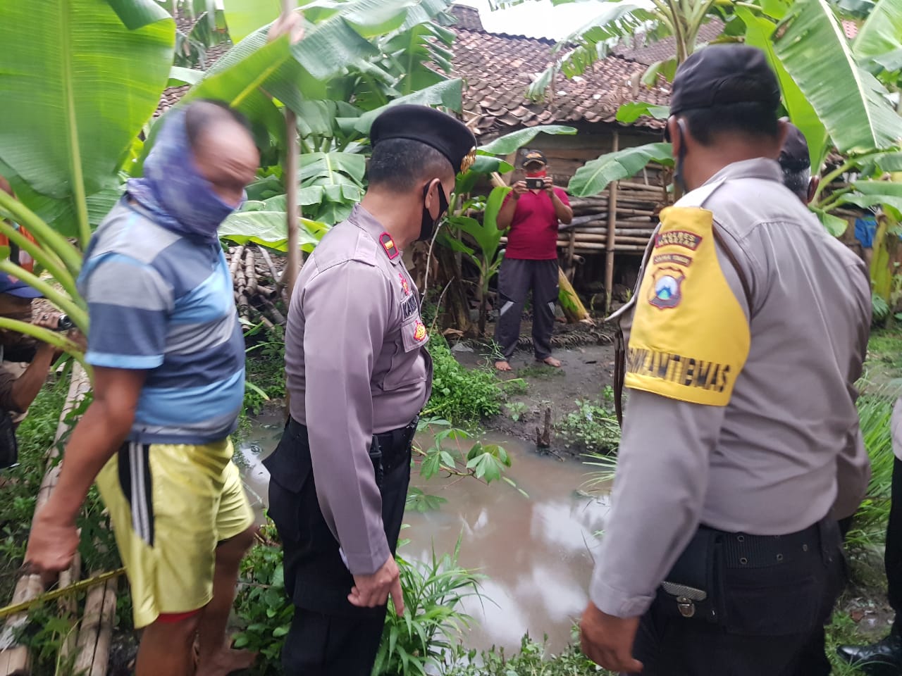 Kebetulan, saat kejadian cuaca mendung. Terlebih semalam suntuk sebelumnya wilayah tersebut diguyur hujan. Praktis parit tempat korban tenggelam dalam kondisi dipenuhi air.