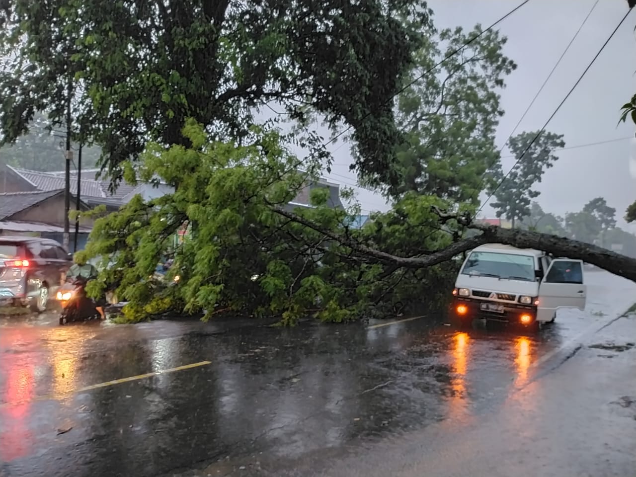 “Alhamdulilah pohon yang menimpa mobil sudah dapat teratasi. Tadi hujan memang deras disertai angin cukup kencang,” terang Yopi, anggota Tim SAR.