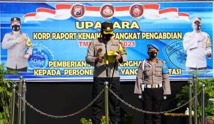 Kapolresta Mojokerto mengatakan, Upacara Korps Raport Kenaikan Pangkat Pengabdian ini, bukanlah kegiatan seremonial biasa, tetapi hendaknya dilihat maknanya, karena kenaikan pangkat pengabdian merupakan penghargaan atau reward yang diberikan oleh pimpinan Polri berdasarkan Prestasi Kerja pengabdian yang terus-menerus tetapi tidak pernah melakukan pelanggaran disiplin maupun pidana selama melaksanakan tugas sebagai anggota Polri dengan melalui suatu proses yang panjang sehingga saudara yang telah ditetapkan oleh pimpinan Polri pantas dan tetap mendapatkan kenaikan pangkat pengabdian setingkat lebih tinggi