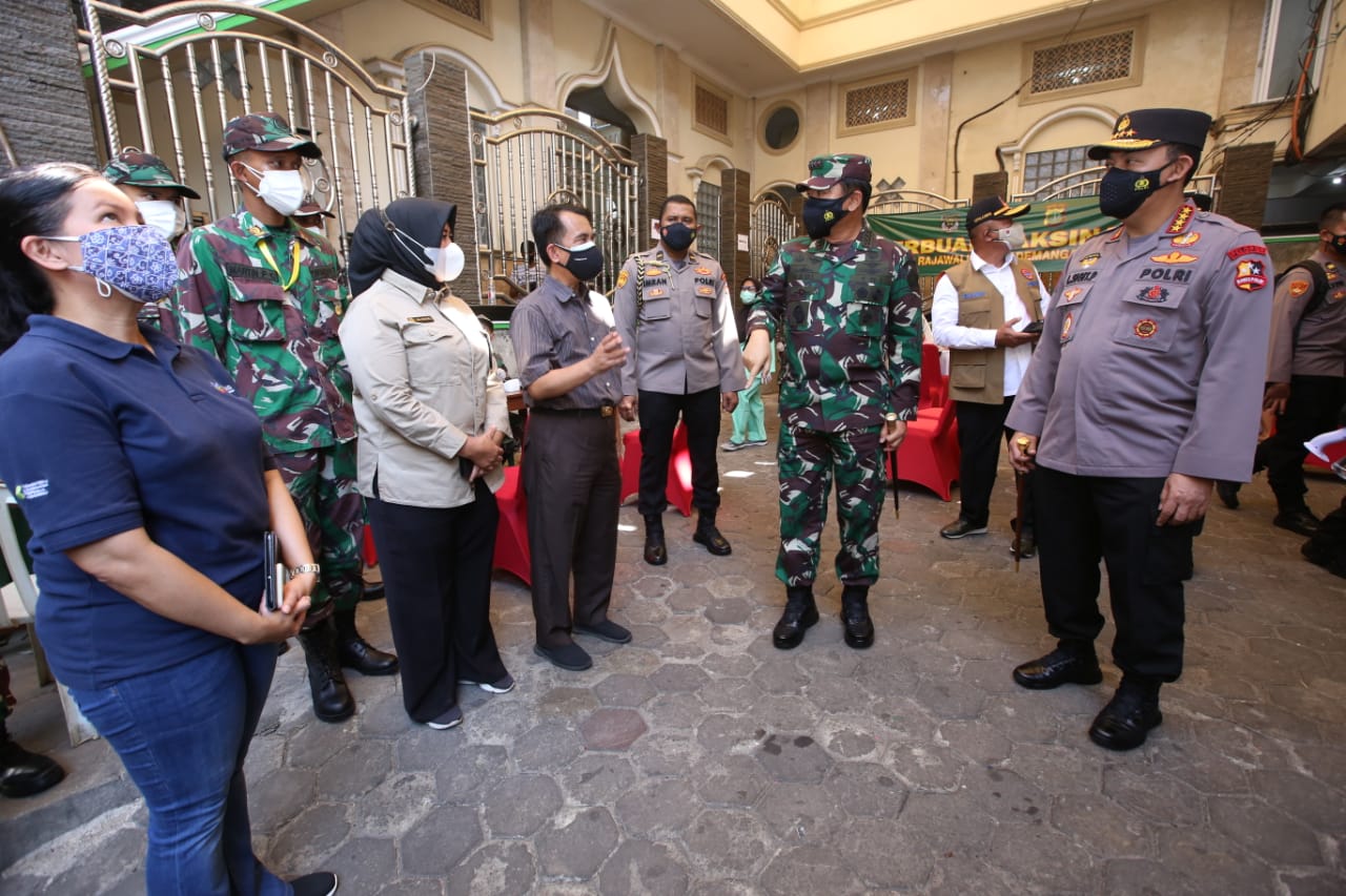Mereka melakukan peninjauan di hari pertama PPKM Darurat ini mulai dari pelaksanaan vaksinasi massal, PPKM Mikro hingga posko penyekatan.