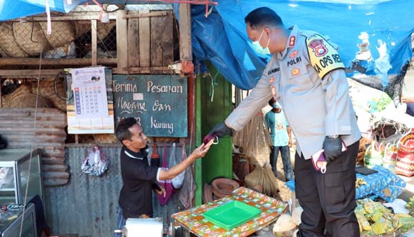 Kapolres juga menyampaikan bahwa pasar tradisional merupakan tempat yang ramai dikunjungi oleh orang banyak dalam satu waktu dan biasanya sulit melakukan pembatasan jarak fisik dikarenakan ramainya pengunjung. Namun para pedagang harus tetap berjualan dan pembeli pun harus mendapatkan bahan pangan untuk kebutuhan sehari-hari.