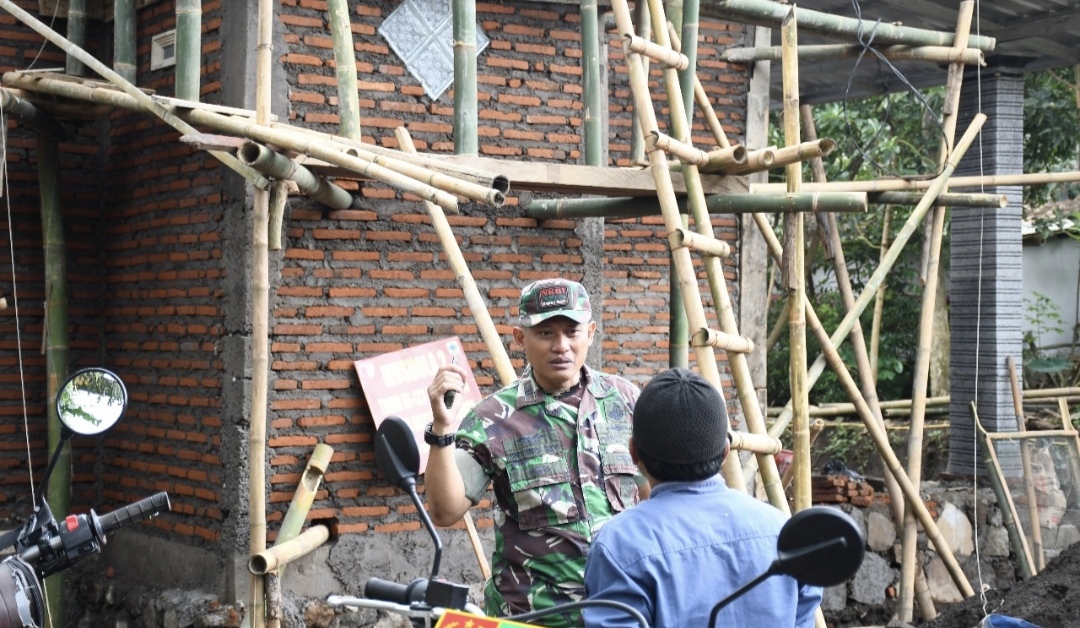 Di sela kegiatan pembangunan, Peltu Untung, anggota Satgas TMMD, tampak berbincang dengan tokoh agama Desa Trotosari. Dalam diskusi tersebut, mereka membahas perkembangan renovasi dan harapan masyarakat terhadap program TMMD ini.