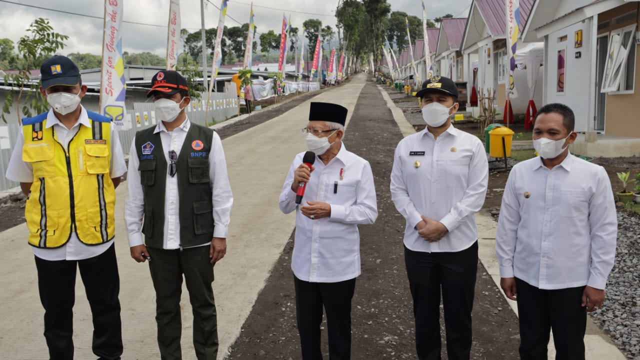 Bertempat di Hunian Sementara (Huntara) Desa Sumber Mujur, Kecamatan Candipuro, Kabupaten Lumajang, Wapres RI didampingi Forkopimda Jatim diantaranya, Pangdam V Brawijaya Mayjend TNI Nurchahyanto, Kapolda Jatim Irjen Pol Nico Afinta dan Wakil Gubernur Jatim Emil Elistianto Dardak.