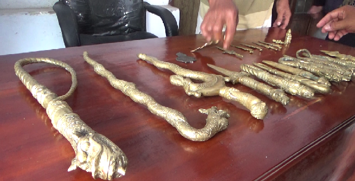 Benda pusaka tersebut terdiri dari berbagai jenis seperti keris, semar, cambuk, patung. Keluarga Sholeh akhirnya menyerahkan benda tersebut kepada Pemerintah Desa Selok Awar Awar.