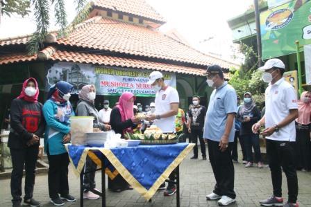 Setelah melaksanakan senam dan mengintruksikan gerakan pembelian produk lokal dilanjut gowes bersama, Bupati Yuhronur kemudian menuju SMPN 2 Lamongan untuk melakukan peletakan batu pertama pembangunan musholla Nurul Iman.