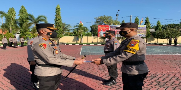 Dalam apel tersebut, Kapolres Probolinggo, AKBP Teuku Arysa Khadafi juga menyerahkan Buku Pedoman Kontijensi Klaster Covid-19.
