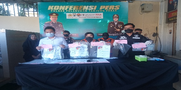 Surabaya – Polres Pelabuhan Tanjung Perak Ungkap perkara pemalsuan surat Genose Covid-19, Waktu kejadian Minggu (20/6/2021) sekira pukul 16.15 wib di depan tenda C Sreening Pos Penyekatan Suramadu Jalan M Noer Surabaya.