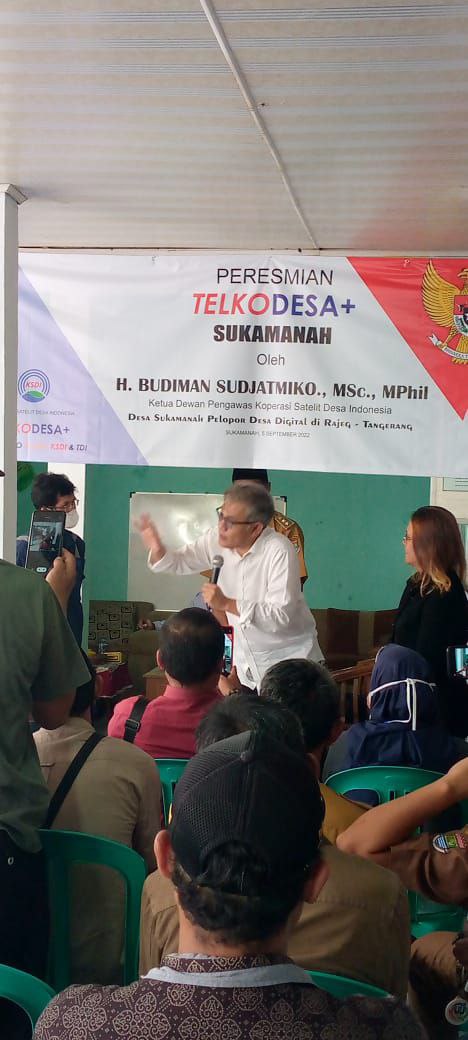 H. Budiman Sudjatmiko., MSc.,MPhil Ketua Dewan Pengawas Satelit Desa Indonesia meresmian TelkoDesa+. Senin (05/09/2022). Desa Sukamanah Pelopor Desa Digital di Wilayah Kecamatan Rajeg Kabupaten Tangerang, Banten.