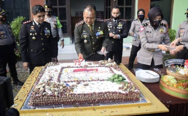 PASURUAN – Kapolres Pasuruan Kota dan Kapolres Kabupaten bersinergi bersama pejabat umum memberikan surprise pada ulang tahun TNI Ke 75 kepada Dandim 0819 Pasuruan, Sebagai bukti dalam rangka mewujudkan sinergitas TNI-POLRI untuk Negeri di Mako Kodim 0819 jalan veteran Kelurahan Kandang Sapi Kecamatan Panggungrejo Kota Pasuruan senin 05/10/2020