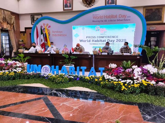 SURABAYA – Pembukaan acara Peringatan Hari Habitat Dunia (World Habitat Day) 2020 akan digelar di Balai Kota Surabaya malam ini, Senin (5/10/2020). Acara internasional yang selalu digelar tiap hari Senin pertama di Bulan Oktober ini bekerjasama dengan UN-Habitat, badan PBB yang bergerak di bidang pemukiman dan pembangunan kota berkelanjutan.