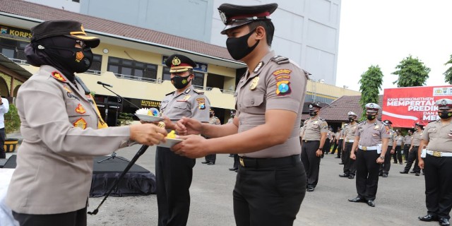 Dalam kegiatan tersebut Kapolres menyampaikan ucapan selamat kepada para personil yang mendapatkan kenaikan pangkat dan berpesan agar kinerja terus ditingkatkan.