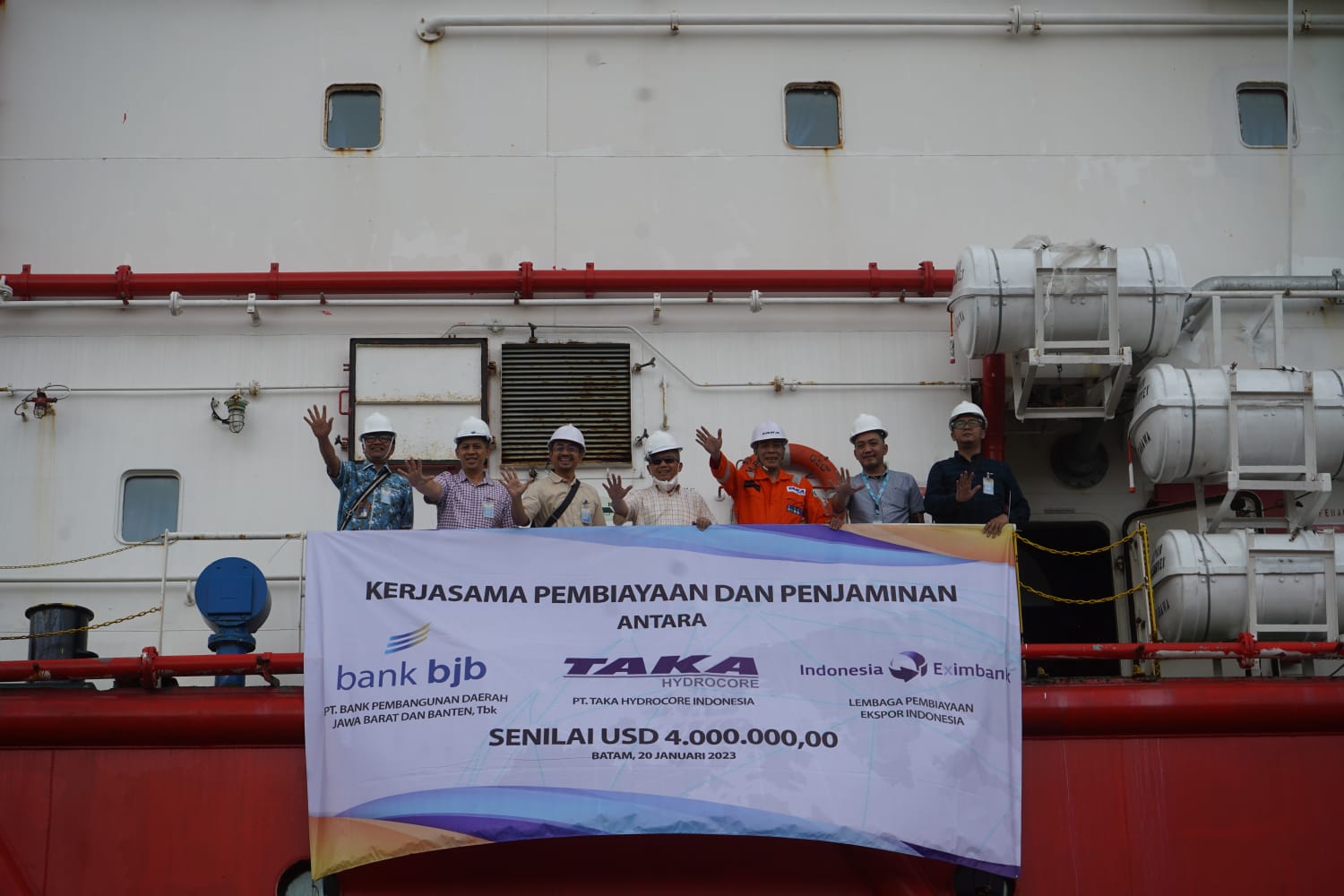 Dalam hal ini dukungan diberikan dalam bentuk Fasilitas Penjaminan Kredit PKE/NIA Kawasan atas Fasilitas Kredit yang diberikan oleh PT Bank Pembangunan Daerah Jawa Barat dan Banten, Tbk. (Bank bjb) kepada PT Taka Hydrocore Indonesia dalam rangka mendukung perusahaan sektor jasa survey geoteknikal Indonesia. Khususnya dalam melaksanakan proyek Offshore Geotechnical Survey Services Congo LNG Project Offshore Congo yang berlokasi di lepas pantai Kongo, Afrika Barat.