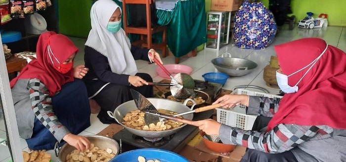 Probolinggo – Santriwati Ponpes Azidan di Kota Probolinggo mengisi pandemi Covid-19 dengan membuat keripik pisang. Selain rasanya yang menggugah selera, kemasannya pun menarik.