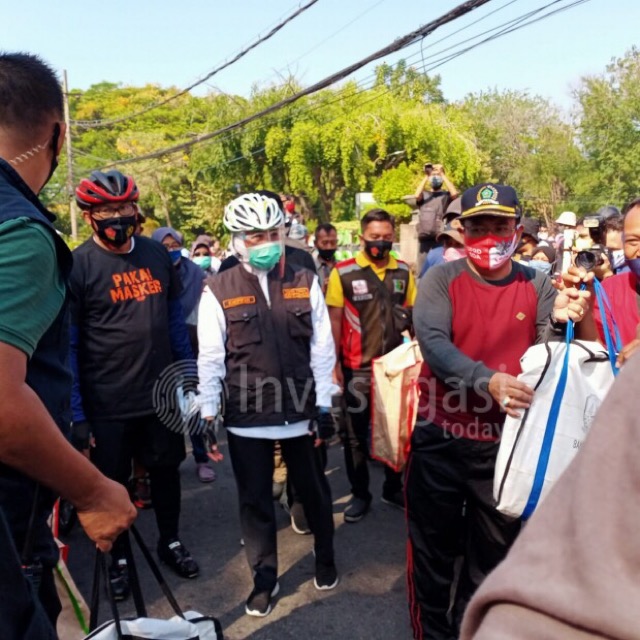 Gowes bareng yang juga diikuti pejabat Pemprov dan Forkopimda Kabupaten Sidoarjo ini diawali dari Pendopo Kabupaten Sidoarjo Jl. Cokronegoro Alun-Alun sisi Utara, lalu berputar kearah Jl Jenggolo  terus ke Jl Sultan Agung. Di sini rombongan gowes membagikan masker kepada tukang becak, pedagang kaki lima, sopir angkot dan masyarakat yang antri berjajar menunggu giliran pembagian.