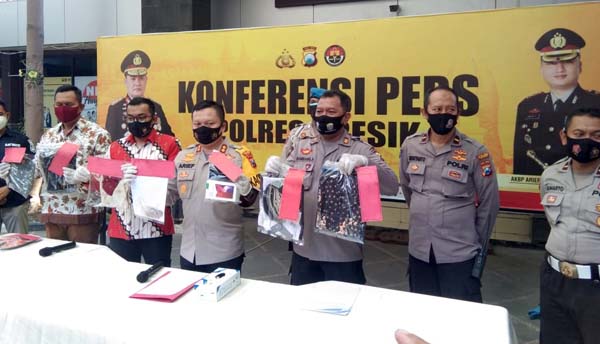 Konferensi pers dipimpin Kapolres Gresik, AKBP Arief Fitrianto SH, SIK, MM, didampingi Kasat Reskrim Polres Gresik AKP Bayu F P, SH, SIK, Kasubag Humas Polres Gresik AKP Bambang Angkasa, KBO Reskrim Ipda Erik Panca, Kasat Tahti Ipda Soleh, Kasi Propam Ipda Suharto, Kasiwas Ipda Heriyanto, Kanit Pidum Polres Gresik Ipda Joko.