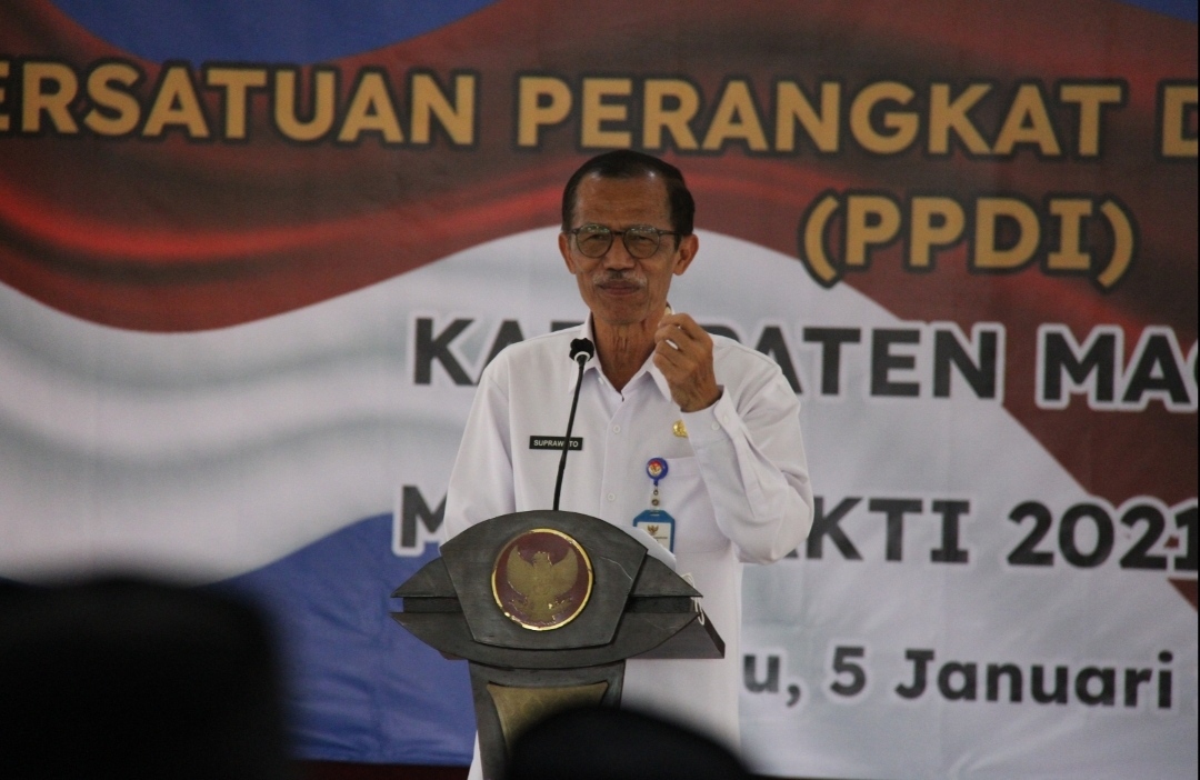 Sebanyak 60 orang Perades dari 235 desa se-Kabupaten Magetan, dikukuhkan langsung Wakil Ketua I PPDI Provinsi Jawa Timur, Agus Purnomo, di Pendopo Surya Graha, Rabu (05/01/2021).