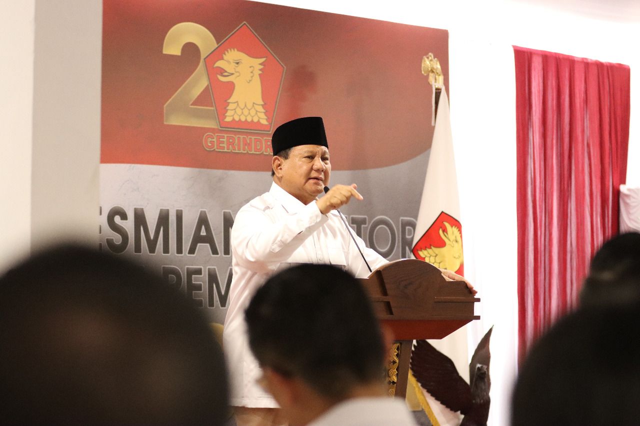 Dalam sambutannya, Prabowo menyampaikan, peresmian kantor ini merupakan aspirasi dari bawah (graceroots). Namun demikian Prabowo menegaskan bahwa kesiapan Partai Gerindra untuk mengikuti kontestasi Pemilu 2024 sudah sangat baik. Partai Gerindra , kata Prabowo, siap membangun kerja sama dengan partai manapun.