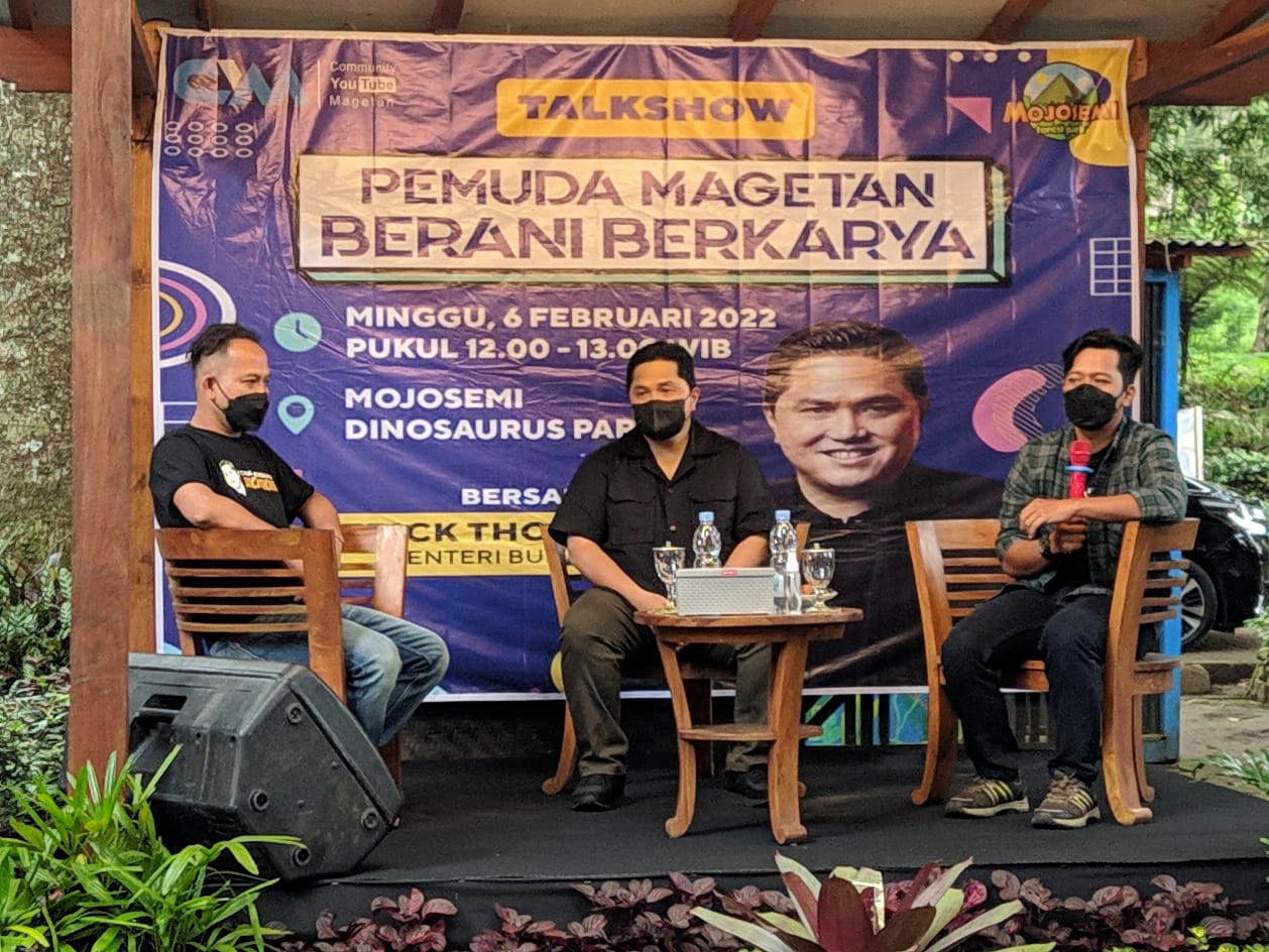 MAGETAN | JATIM.SIBERINDO.CO – Menteri Badan Usaha Milik Negara (BUMN) RI, Erick Thohir, berkunjung ke Kabupaten Magetan Jawa Timur, tepatnya di objek wisata Mojosemi Forest Park untuk melakukan talk show dengan tema “Pemuda Magetan Berani Berkarya”, Minggu (6/2/2022).