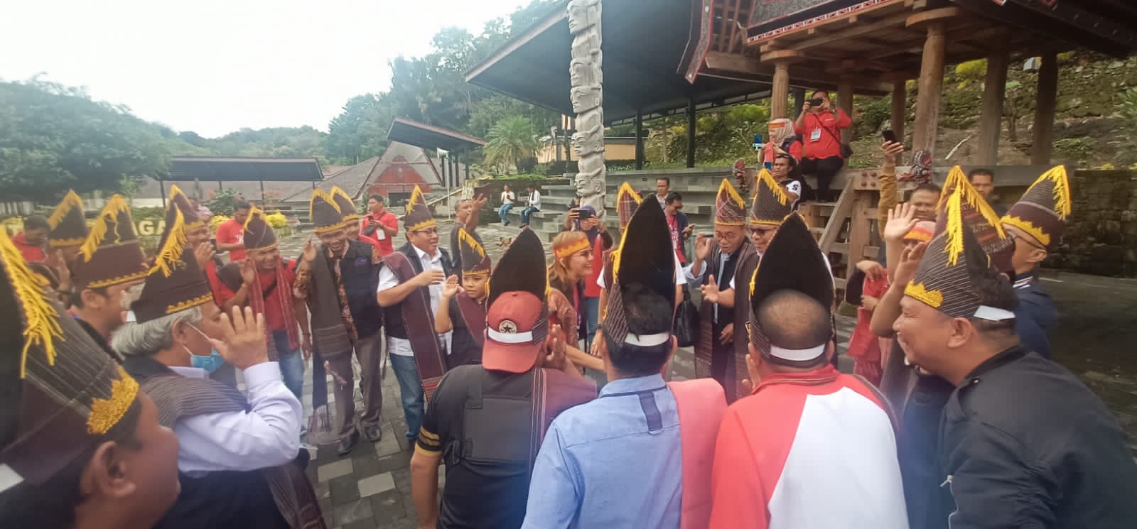 Dalam kunjungan rombongan SMSI se-Indonesia di Huta Siallagan Samosir, Senin, 6 Februari 2023, dihiasi dengan penambalan marga bagi dua orang pengurus SMSI Provinsi Sumatera Utara.