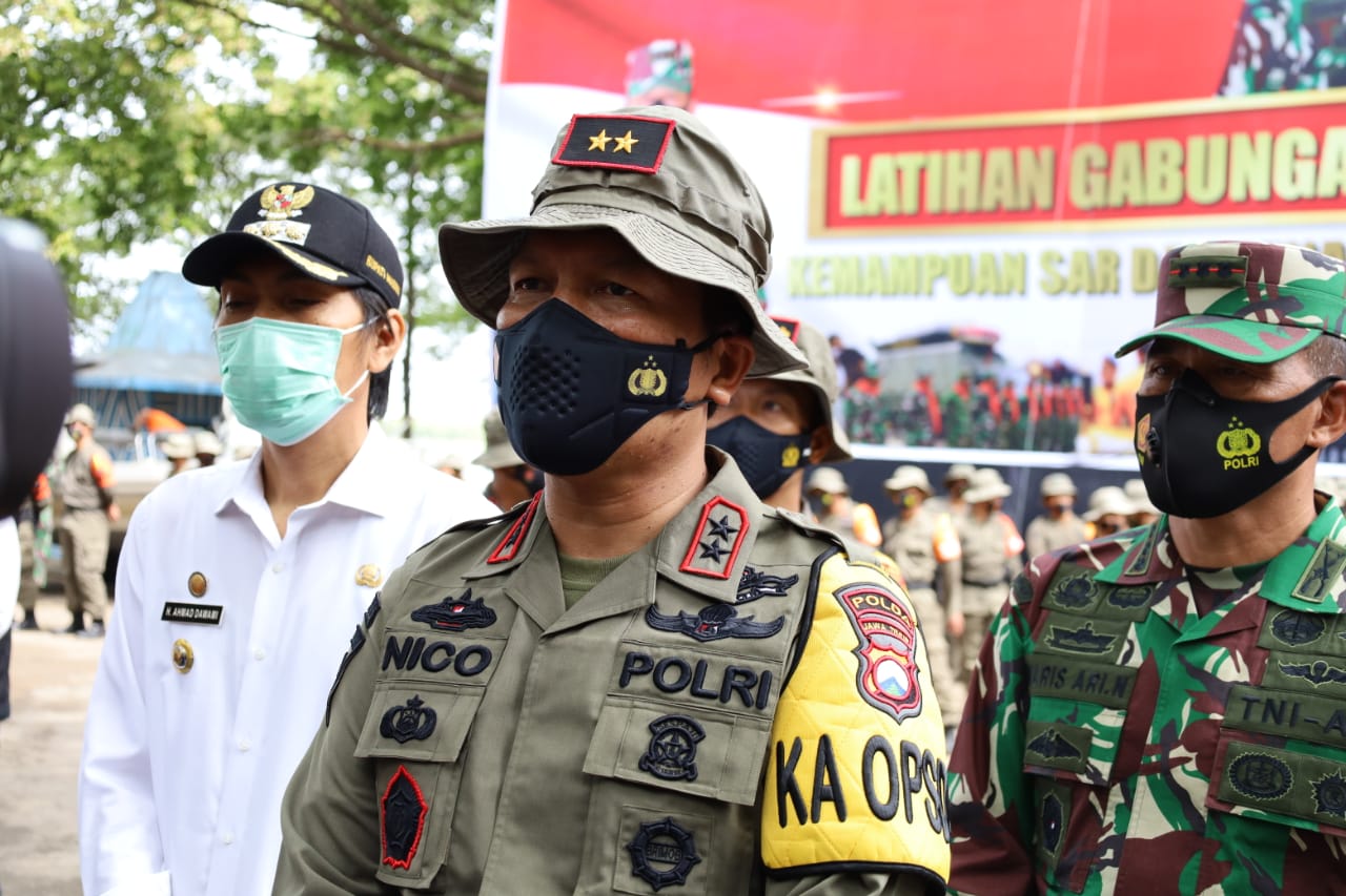Madiun – Kapolda Jawa Timur Irjen Pol Nico Afinta, bersama Pejabat Utama Polda Jatim dan Kabid Humas Polda Jatim, Kombes Pol Gatot Repli Handoko, mengukuti kegiatan Latihan Gabungan (LATGAB) kemampuan Search And Rescue (SAR), dan penanganan kebakaran hutan dan lahan (KARHUTLA), bersama TNI-POLRI, BPBD, dan Dinas Kehutanan, di Waduk Bening, Saradan, Madiun, Jawa Timur. Rabu (7/6/2021).