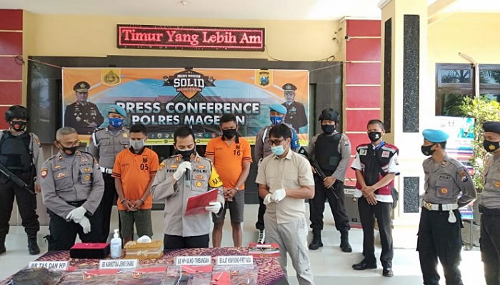 Sementara itu, Kapolres Magetan, AKBP Festo Ari Permana,S.I.K mengatakan, masing-masing tersangka akan dijerat dengan Undang-Undang No. 35 tahun 2009 tentang Narkotika.