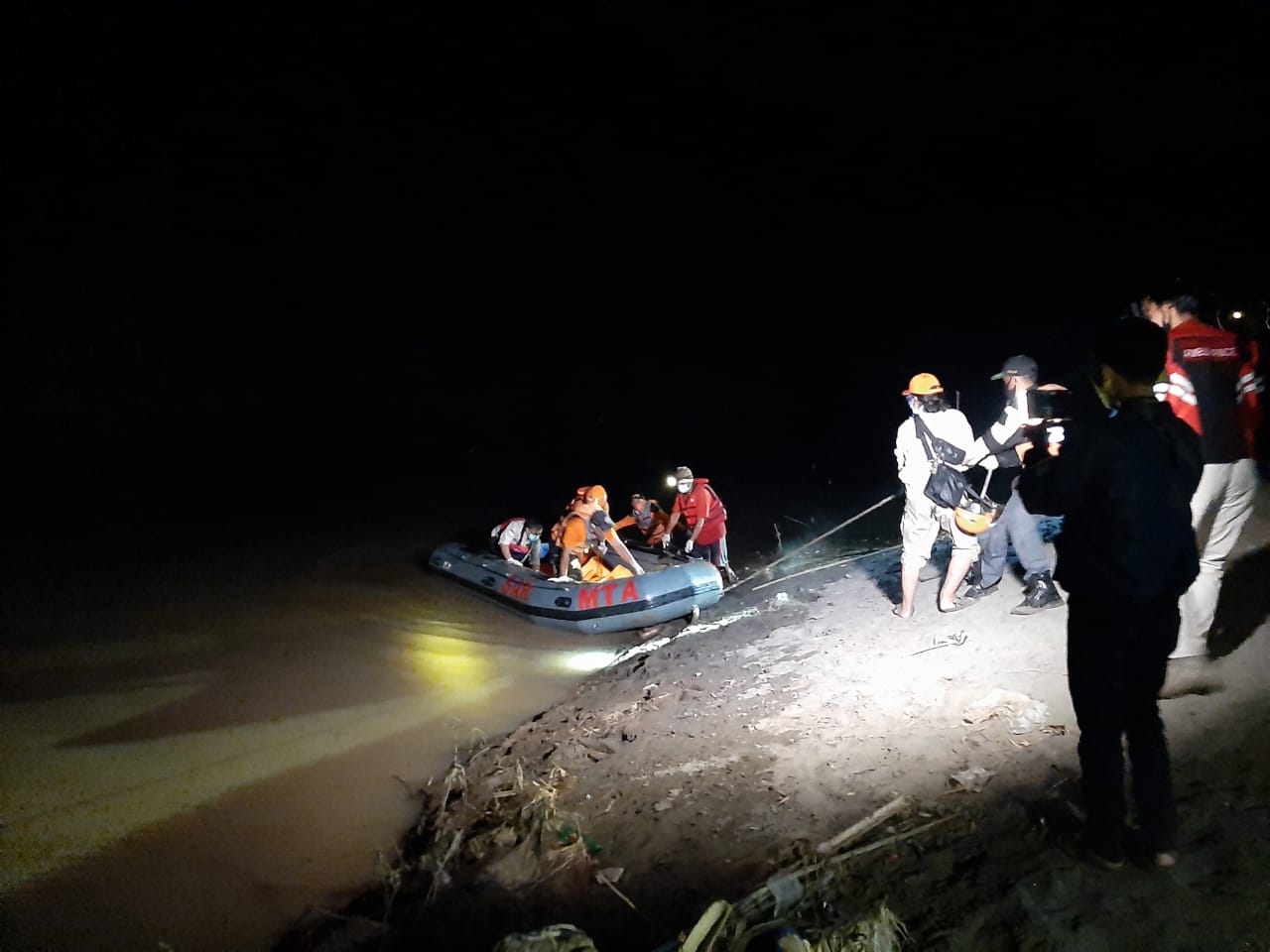 Evakuasi dilakulan Tim SAR menggunakan perahu karet. Lantaran tim penolong tidak mau mengambil resiko terjadinya kecelakaan, jika tiba tiba terjadi gelombang air dari hulu di musim penghujan ini.