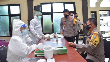 Kapolres mengungkapkan, bagi anggota yang kedapatan reaktif, langsung menjalani swab. Dan tugasnya diganti anggota Polres Lamongan lainnya yang masih sehat.