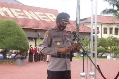 SUMENEP – Pelaksanaan kegiatan apel pembukaan Pendidikan dan Latihan (Diklat) sekaligus penempuhan wings pramuka saka Bhayangkara Polres Sumenep di lapangan apel Sanika Satyawada Polres Sumenep jalan Urip Sumoharjo No.35 Desa Pabian Kecamatan Kota Kabupaten Sumenep Madura Jawa Timur. Jum’at (08/01/2021)