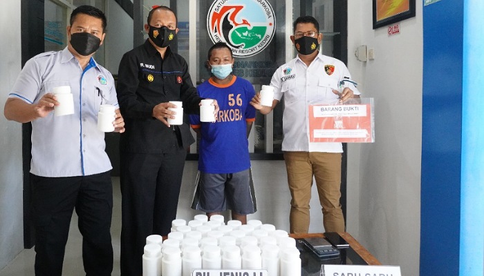 “Saat ini pelaku kita tahan guna proses hukum lebih lanjut, dan kita jerat dengan Pasal 114:ayat (1) sub pasal 112 ayat (1) UU RI No. 35 tahun 2009 tentang Narkotika dan pasal 197 Sub pasal 196 UU RI No. 36 tahun 2009 tentang Kesehatan,” terang Kasubbag Humas Polres Kediri, AKP Ratmoko Budi Lartono. (Zainal / Edy Siswanto – optimistv.co.id)