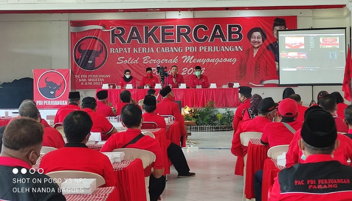 Sementara itu Rakercab PDI Perjuangan Kabupaten Magetan ini digelar di Kantor DPC, Kecamatan Sukomoro, Kabupaten Magetan. diikuti segenap pengurus DPC dan PAC PDI Perjuangan se Kabupaten Magetan. Pimpinan sidang Wakil Ketua DPD PDI Perjuangan Provinsi Jawa Timur, Deni Wicaksono, S.Sos, Bendahara DPD Wara Renny Pramana dan didampingi oleh Ketua DPC PDI Perjuangan Magetan, Sujatno, SE.MM