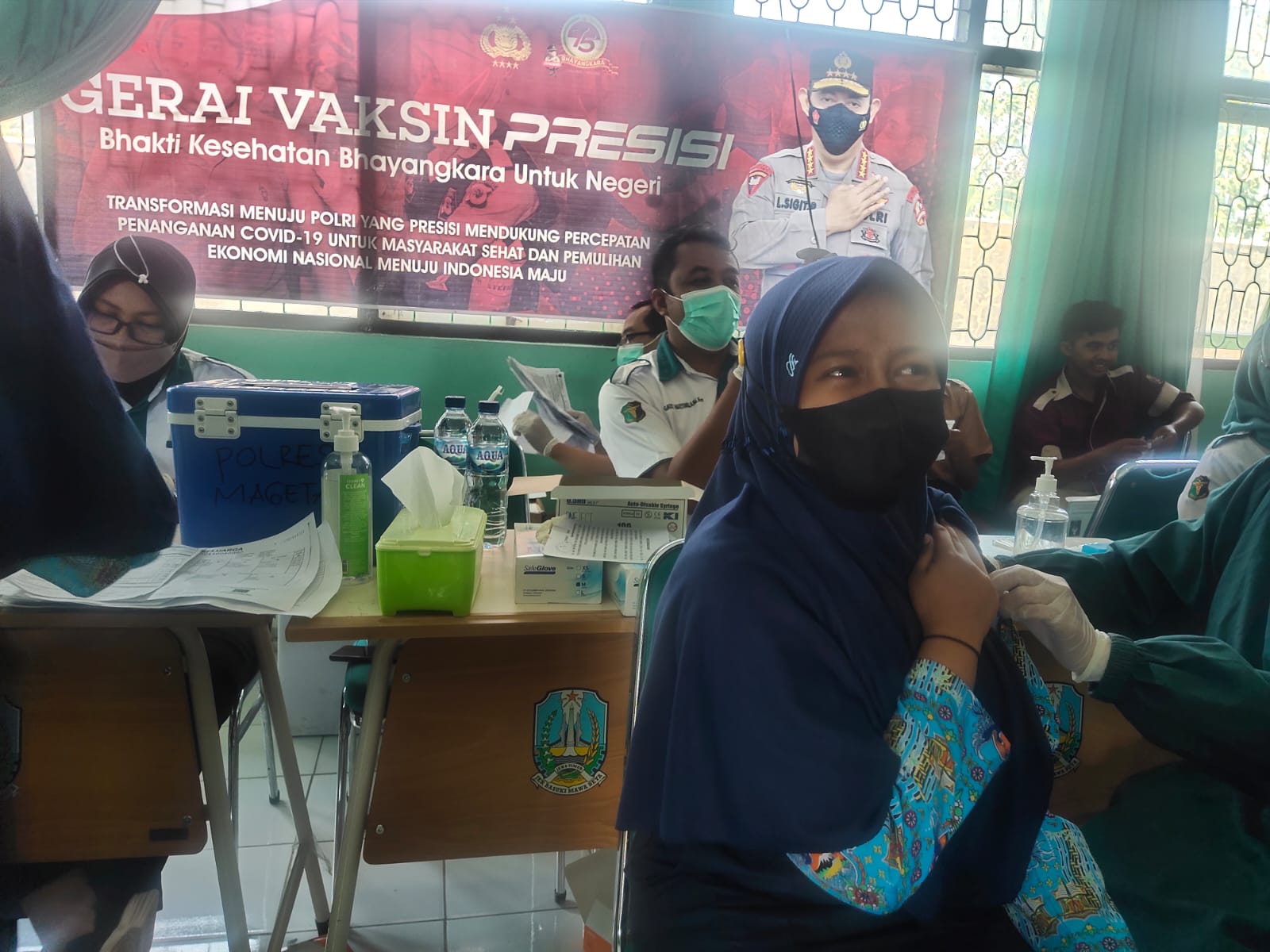 Dijelaslan Kapolres Magetan, Pemerintah menargetkan vaksinasi bagi seluruh pelajar dapat segera dilaksanakan, bersamaan dengan akan diselenggarakan PTM. “Sebelumnya para guru sudah dilakukan vaksinasi, sehingga sasaran hari ini para peserta didik untuk mendapatkan suntikan vaksin,” jelasnya.