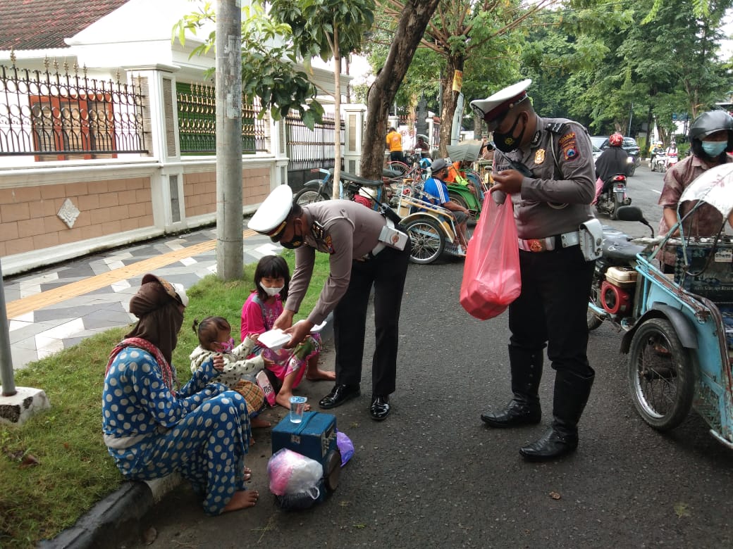 Bojonegoro – Satlantas (Satuan Lalu Lintas) Polres Bojonegoro melalui Unit Dikyasa Lantas yang dipimpin langsung Kasatlantas Polres Bojonegoro membagikan nasi kotak kepada masyarakat yang membutuhkan serta memberikan himbauan keselamatan berlalu lintas bagi masyarakat pengguna jalan, Jum’at (8/1/21).