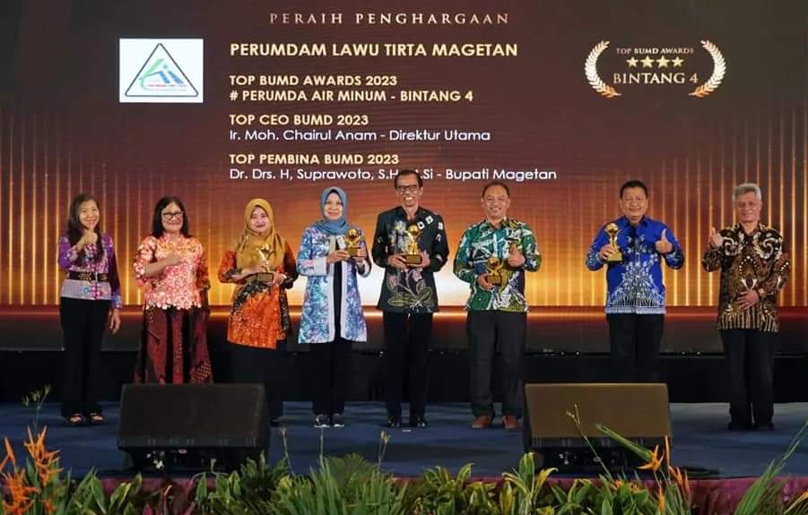 Penghargaan tersebut diterima langsung oleh Bupati Magetan didampingi jajaran pengurus Perseroda dan OPD terkait, melalui 2 (dua) Perseroda-nya yaitu, Perumdam Lawu Tirta dan BPRS Magetan. Bertempat Dian Ballroom, Raffles Hotel, Jakarta Selatan pada Rabu (5/4/2023).