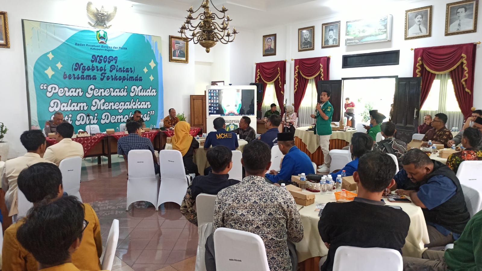 Magetan | jatim.siberindo.co – Para tokoh pemuda dari berbagai organisasi kepemudaan di Magetan, menghadiri acara “Ngopi” (Ngobrol Pintar) bersama Forkopimda, yang digelar oleh Badan Kesatuan Bangsa dan Politik (Bakesbangpol) di ruang pertemuan pendopo surya graha Kabupaten Magetan pada Jumat (9/8/2024).
