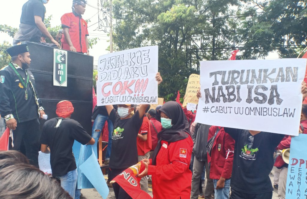 Selain itu, massa juga meminta agar Presiden mengeluarkan Perpu untuk mencabut UU omnibus law cipta kerja. Karena kebijakan tidak pro rakyat.