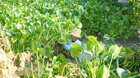 Enceng gondoknya ini harus didorong sehingga aliran air sungai dari hulu hingga hilir bisa berjalan lancar, melalui kerja bakti tadi enceng gondoknya bisa keluar ke sungai, tutur Pak Yes sapaan akrab Bupati Lamongan
