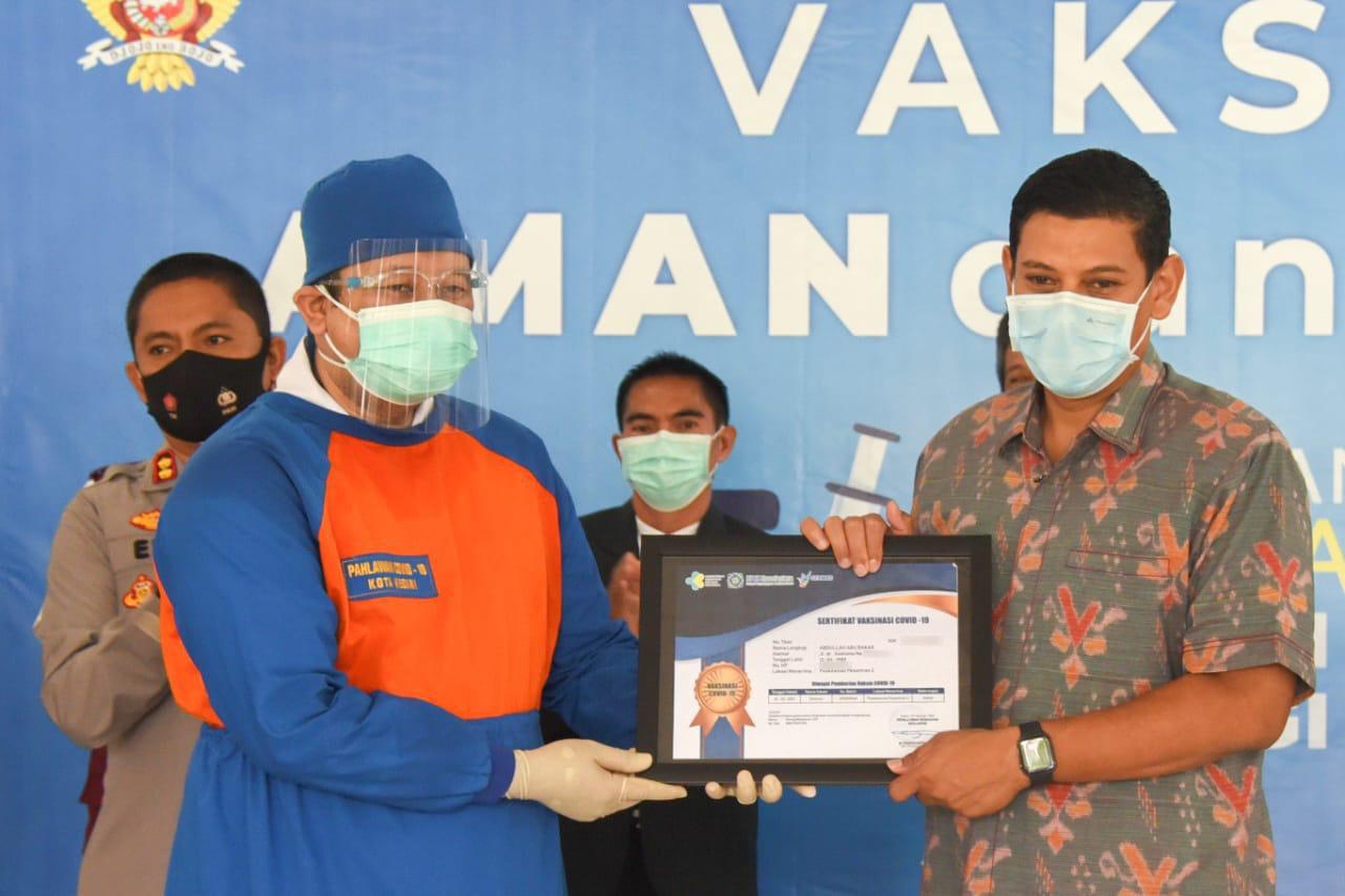 FOTO : Wali Kota Kediri, Abdullah Abu Bakar, disuntik vaksin Covid-19 dosis kedua dan mengaku tidak merasakan efek samping apapun