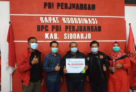 Secara simbolis, santunan berjumlah sebesar Rp 252.000.000 diserahkan secara langsung kepada enam orang ahli waris fungsionaris PDI Perjuangan Sidoarjo.