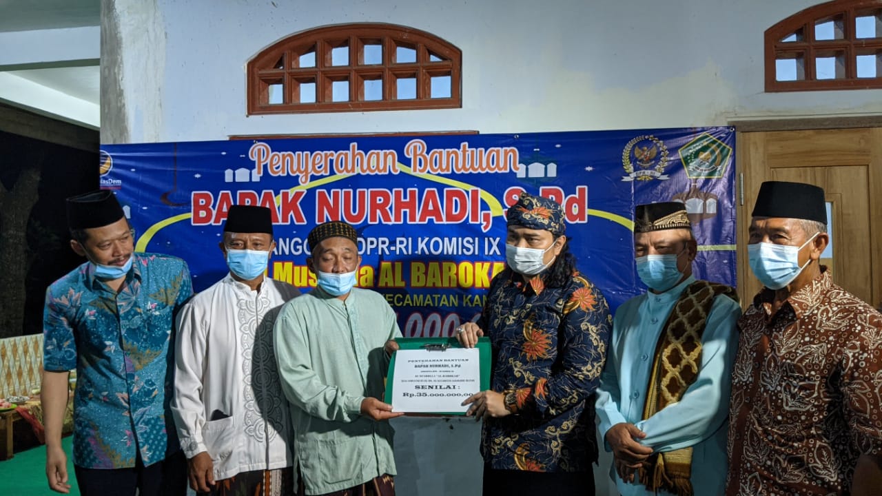 BLITAR- Anggota Dewan Perwakilan Rakyat (DPR) RI Nurhadi,S.Pd menyerahkan bantuan yang diperuntukkan di salah satu Mushola di Kabupaten Blitar, Jawa Timur, senilai Rp 35 juta