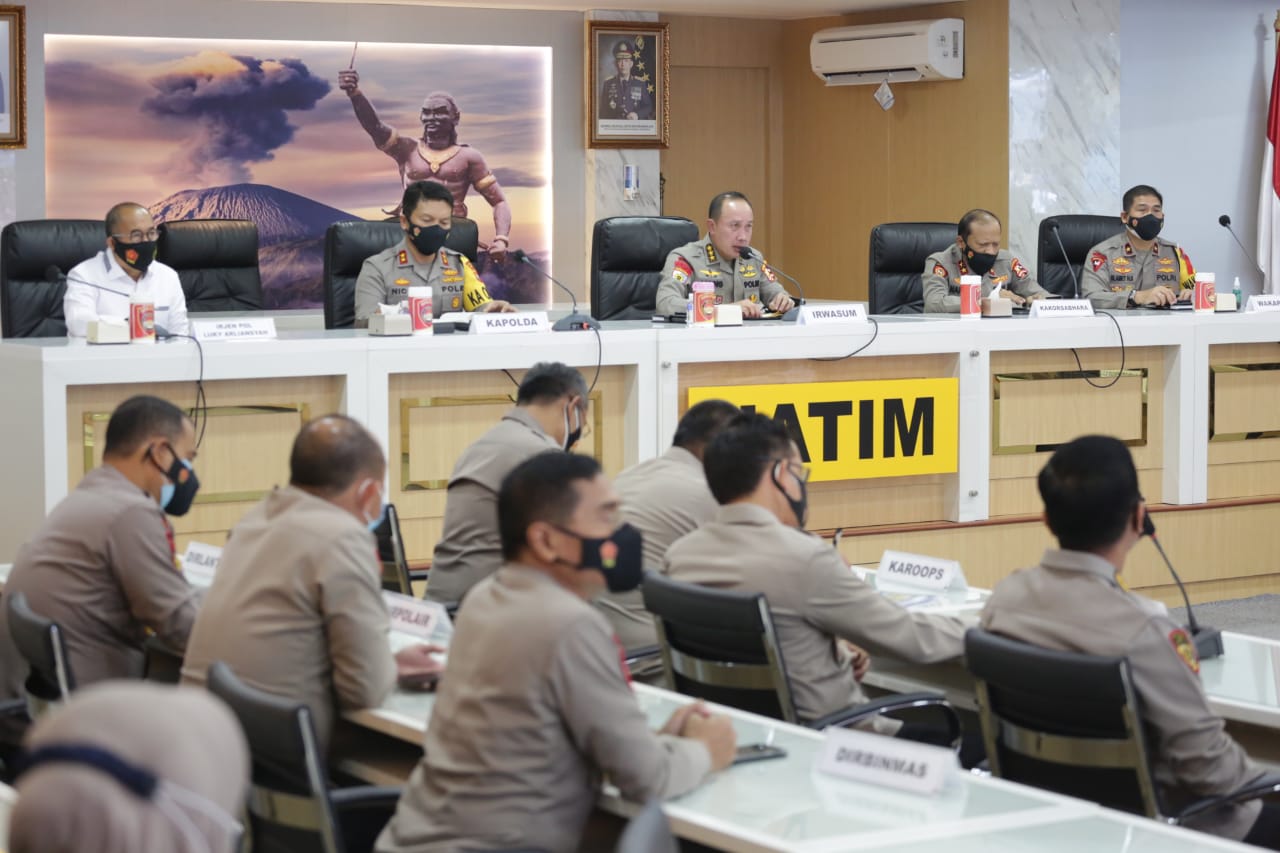 Kapolda Jawa Timur Irjen Pol Dr. Nico Afinta menjelaskan, bahwa situasi kamtibmas di Wilayah Hukum Polda Jatim saat ini kondusif. Ditandai dengan menurunnya angka kriminalitas serta perkembangan penanganan Covid-19 melalui PPKM Mikro efektif menekan laju angka penularan Covid-19.