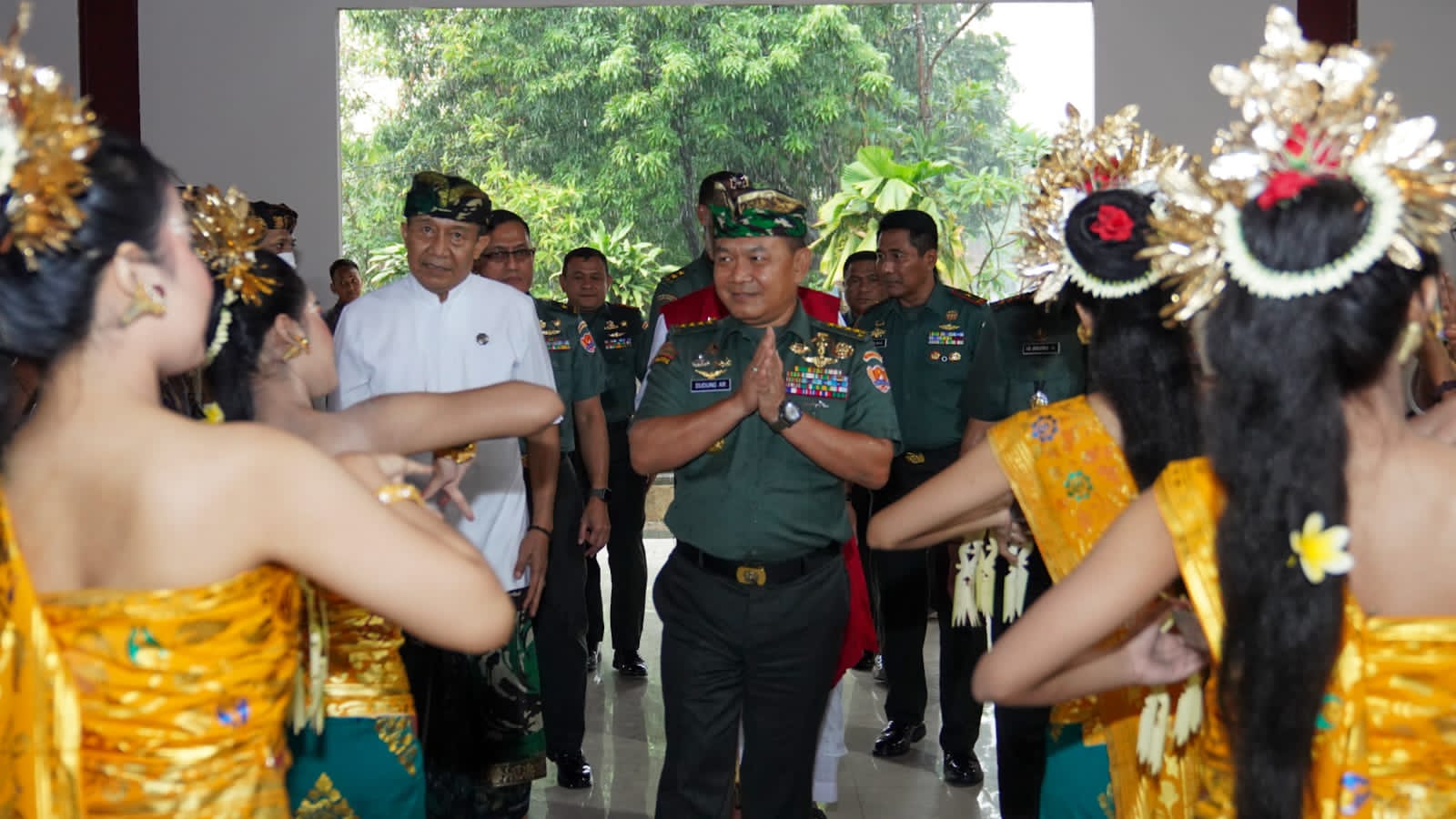 Kehadiran Kasad yang didampingi Aster Kasad dan Kadisbintalad, disambut Ketua Umum Pengurus Harian PHDI Pusat, Mayjen TNI Purn Wisnu Bawa Tenaya beserta tokoh agama pemimpin umat Hindu, Ida Pedanda Bang Buruan Manuaba dan wakilnya, Ida Rsi Agung Wayahan Suta Dharma Jaya Giri yang merupakan anggota Sibha Pandita.