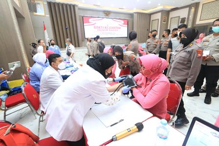 Sedangkan untuk kegiatan hari ini dilaksanakan donor darah yang dilaksanakan di Gedung Mahameru, Mapolda Jatim. Dalam kegiatan donor darah ini diikuti oleh 300 peserta donor terdiri dari Polwan, Polri, ASN, dan Bhayangkari.