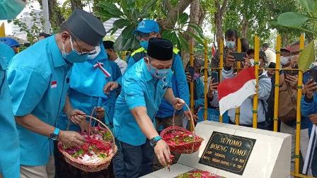 SURABAYA, jatim.siberindo.co – Ketua Umum Partai Gelora, Anis Matta menggelar tahlil dan doa untuk pahlawan bangsa di Taman Makam Pahlawan Ngagel Rejo. Anis Matta yang didampingi Fahri Hamzah dan pemeran Jenderal Naga Bonar, Deddy Mizwar juga melakukan tabur bunga di makam tokoh 10 Nopember 1945, Bung Tomo