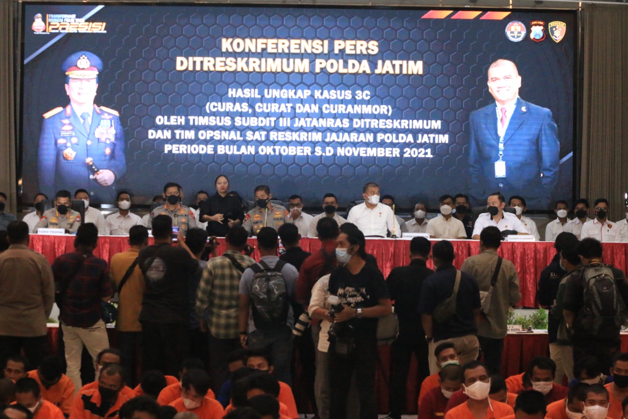 Konferensi Pers tersebut mengungkap semua tindak kriminalitas yang berhasil diamankan oleh Subdit III Jatanras Ditreskrimum dan Tim Opsnal Sat Reskrim Polres Jajaran Polda Jatim. Dari pengungkapan ini, sebanyak 262 tersangka telah diamankan dari masing-masing kasus berbeda-beda.