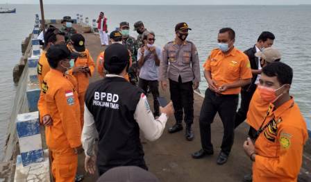 Bertempat di Mapolsek Prenduan, dilaksanakan giat apel gabungan pencarian korban dipimpin langsung oleh Kapolsek Prenduan AKP Ach. Supriyadi, SH., bersama personil Polsek Prenduan, Koramil Pragaan, Tenaga medis Puskesmas Pragaan, Tim Basarnas Jawa Timur One Risky, Adi Kurniawan, Edi Faizin, Agik Hamdani, Agung Santoso, Agus Santoso, Basarnas Sumenep H. Heri, Dian Widianto, Ibnu Hakim, dan beberapa nelayan desa, serta perwakilan keluarga korban.