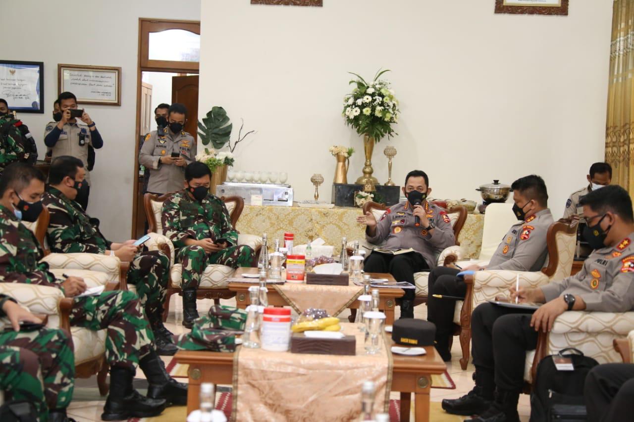 Jatim – Panglima TNI dan Kapolri memberikan pengarahan kepada Pangdam V Brawijaya, dan Kapolda Jawa Timur terkait penanganan Covid-19 di Jawa Timur, pada Jumat (11/6/2021) di Lanudal Juanda, Sidoarjo.