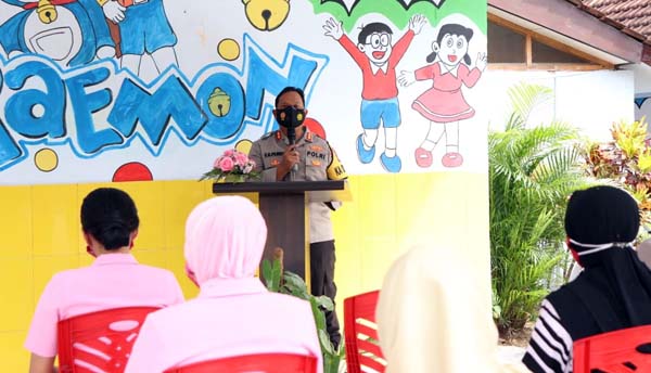Di acara peresmian TK Kemala Bhayangkari 49 Kecamatan Ngunut tersebut, Ketua Bhayangkari Cabang Kabupaten Tulungagung juga memberikan Paket Sembako serta membagikan 200 masker anak.